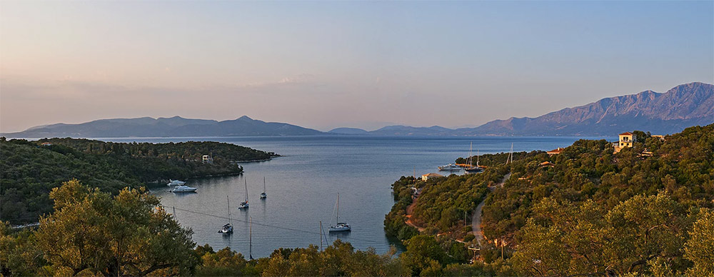 Lies next to villa Taphian and enjoys unlimited views of Abelaki bay and surrounding cliffs.